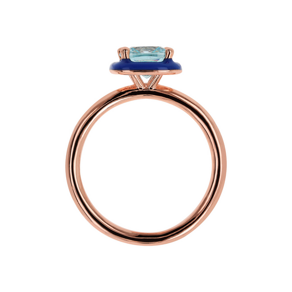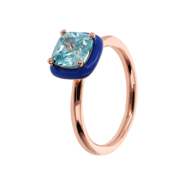 Anello cocktail Bronzallure realizzato su base Golden Rosé, placcata oro rosa 18kt, impreziosito da una base smaltata sulla quale è posizionata una pietra prisma gem quadrata (7×7 mm). Misura 16.