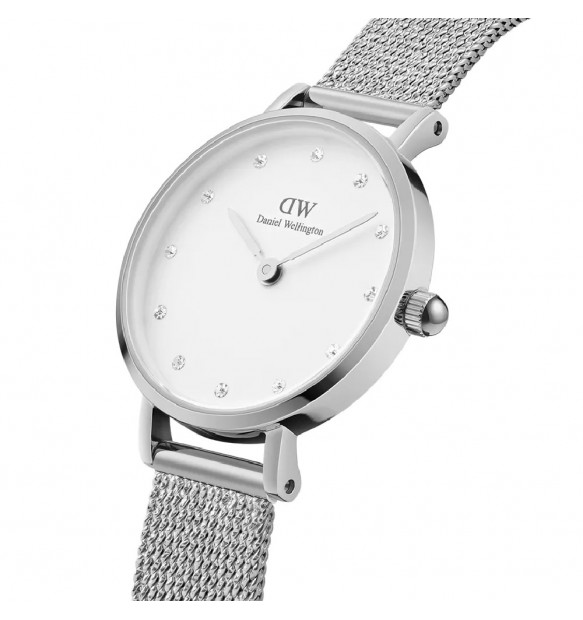 Quadrante bianco con cristalli Preciosa bianchi agli indici.