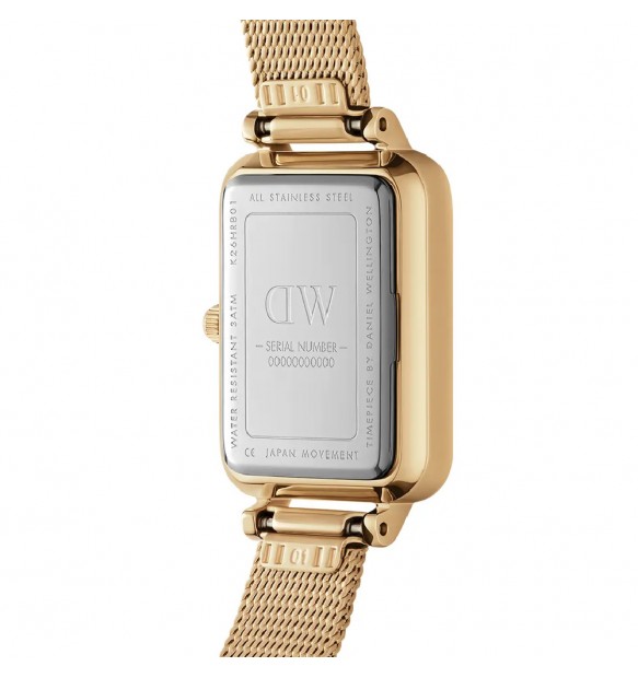 Cassa in acciaio inox con finitura dorata dalle dimensioni di 20 mm x 26 mm e spessore di 6 mm.