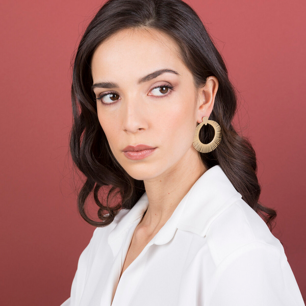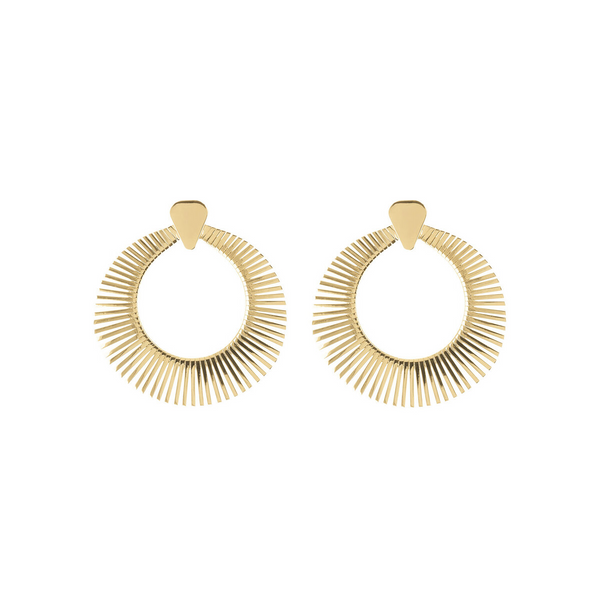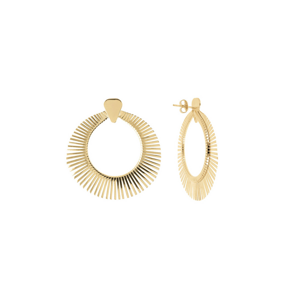 Orecchini Cleopatra Etrusca Gioielli montati su base Golden, placcata oro giallo 18kt, dal design a cerchio graduato; chiusura a perno e farfalla.