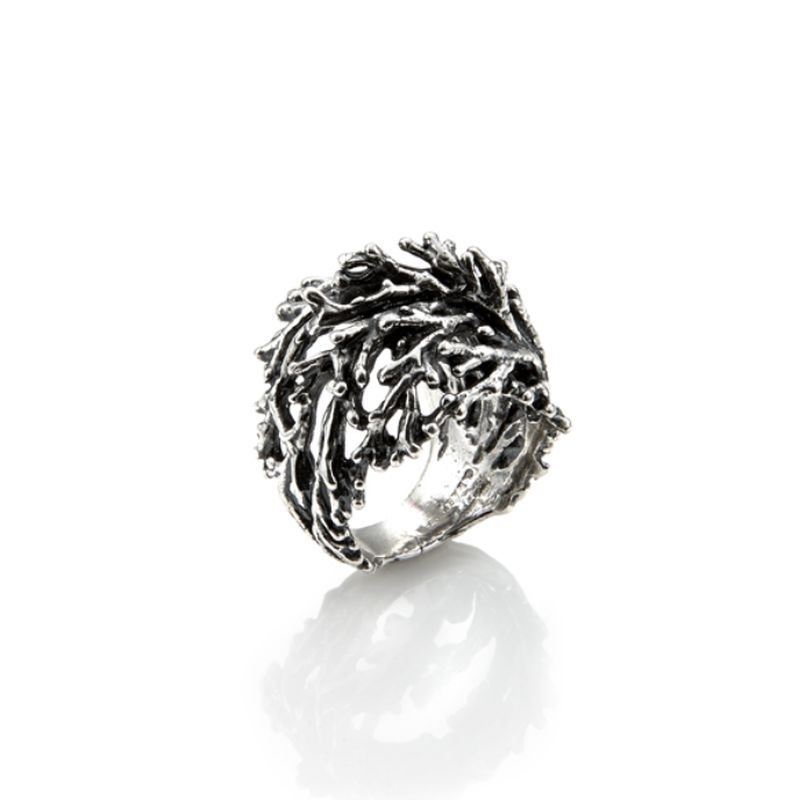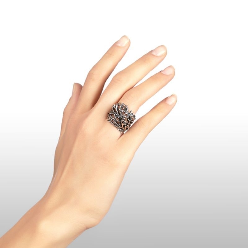 I contrasti luminosi dell’argento brunito trasformano questo anello della collezione Coral in un meraviglioso gioiello contemporaneo. Una creazione nata dal mare per affascinare una donna sofisticata e decisa. Fatto completamente a mano, in house, l’anello racconta tutta la tecnica artigiana del marchio Giovanni Raspini.