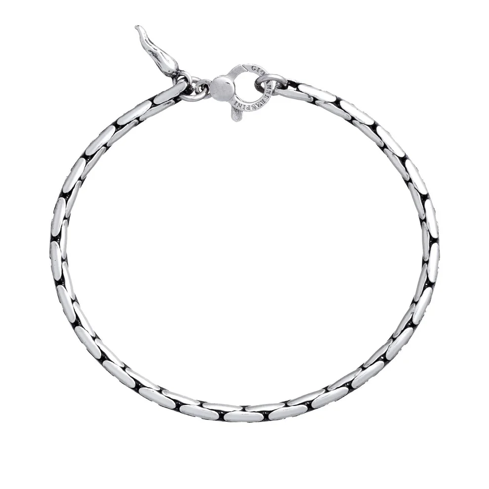 Il Bracciale Cardano coniuga la flessuosità di una sapiente lavorazione con i riflessi luminosi dell’argento 925. Un gioiello minimale per l’uomo che ama la bellezza non disgiunta dalla praticità.