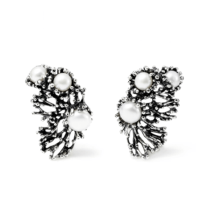 Eleganza e indosso impeccabile per il pendente Anemone Mini, realizzato completamente a mano in argento brunito e perle naturali. In esso il decoro naturalistico si fonde magicamente con la delicatezza delle perle di fiume e il fascino eterno delle profondità marine.