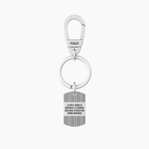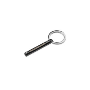 Portachiavi da uomo di Kulto della collezione Keyholders. Gioiello realizzato in acciaio con particolare interno di pelle intrecciata nera. Misure gioiello: lunghezza 80mm.