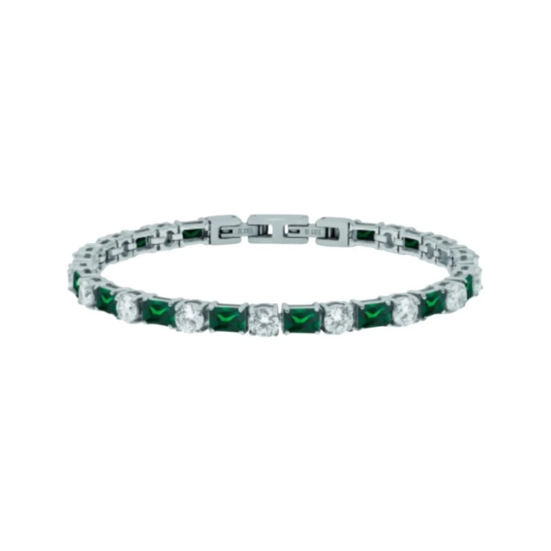 Bracciale donna LIU JO, in acciaio con pietre bianche e verdi alternate. Lunghezza 19 cm. Codice LJ 2689