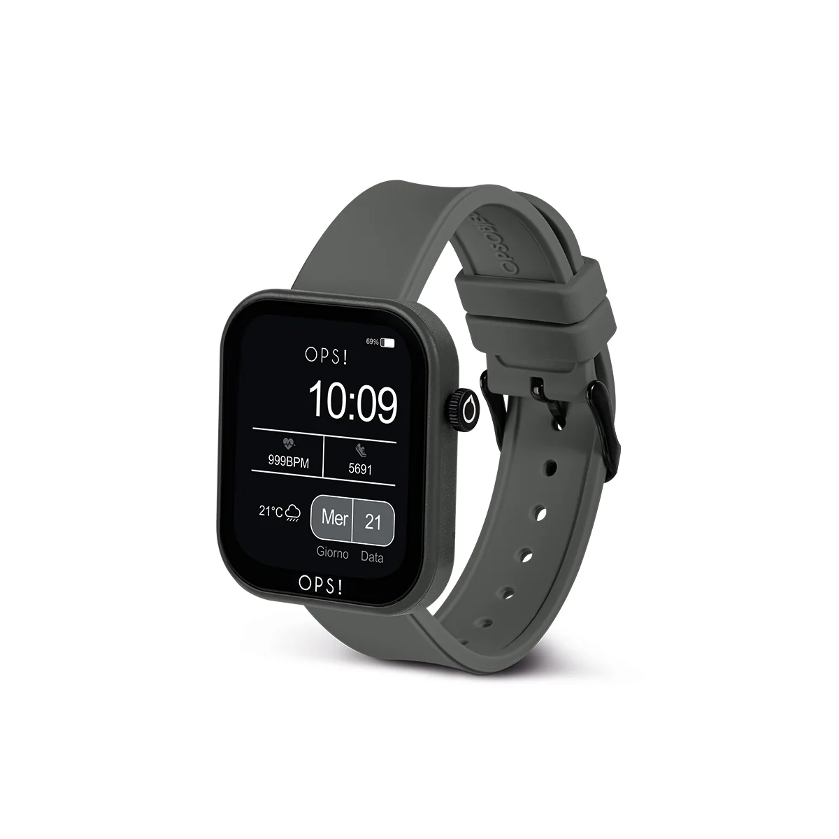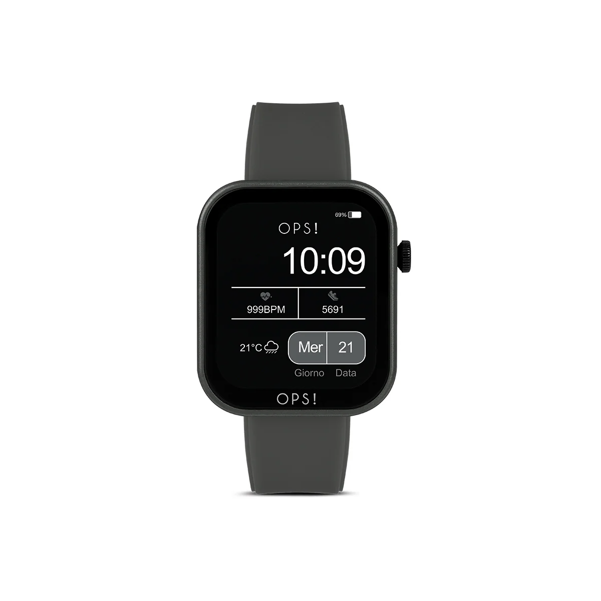 Smartwatch Opsobject OPS!SMART Active Call Unisex OPSSW-30. Smartwatch con cassa in ABS e cinturino in silicone anallergico. Dimensioni cassa 40x44x10.7 mm con Display 1.83” Color full touch. Circonferenza interna del cinturino: da 180 mm a 140 mm. Chiusura ad ardiglione in acciaio. Cassa e cinturino di colore grigio.