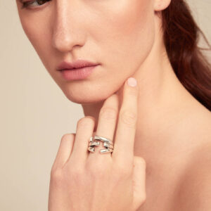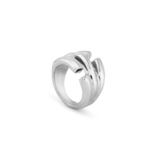 Anello in lega di metalli placcato argento Sterling. Collezione Vital, ispirata al potere della luce propria. Una collezione di gioielli organici, con curvature e irregolarità in metallo che, combinate con cristalli sfaccettai, donano brillantezza ed energia. Imprescindibili e intramontabili. Pezzi per anime vitali, vive, uniche. Articolo nr: ANI0810